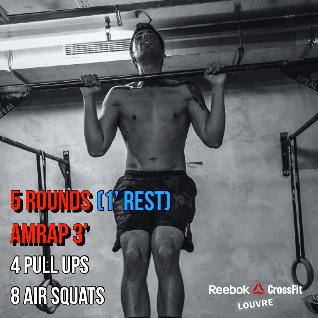 Objectifs: Variante du Wod qui a déjà été programmé le 16/02.L’objectif est de rester constant durant les 3 minutes.Utilisez un scaling sur les pull ups