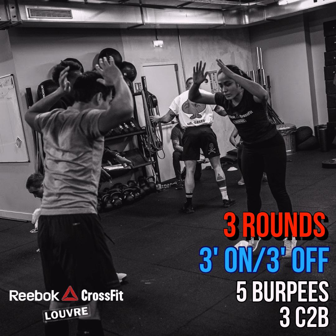 L’objectif de cet entrainement est d’améliorer votre conditionnement métabolique.Le temps d’effort devrait vous prendre entre 40 » et 45 » . Mouvements: Row, Burpee Facing