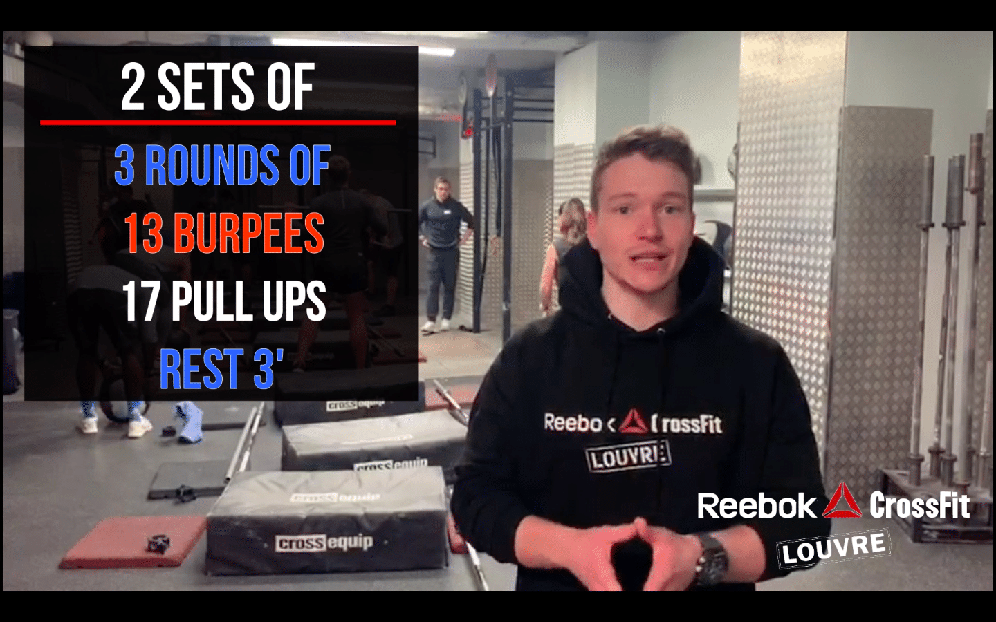 [instagram url=https://www.instagram.com/p/BxJWpUMgmQ4/?utm_source=ig_web_button_share_sheet hidecaption=false] L’objectif de cet entrainement est d’effectuer un sprint. Les Burpees devraient être faits le plus rapidement possible et pratiquez les pull up