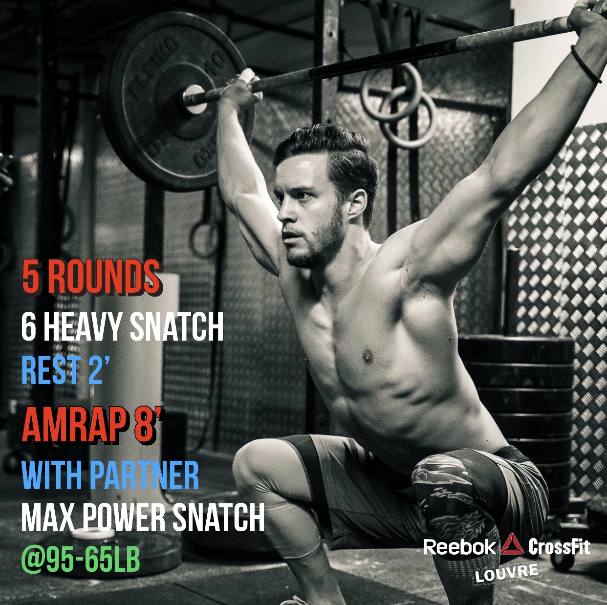 Deuxième jour de suite où l’objectif de séance est de soulever lourd. Nous travaillerons le snatch sur 30 répétitions au total.Utilisez une charge proche de