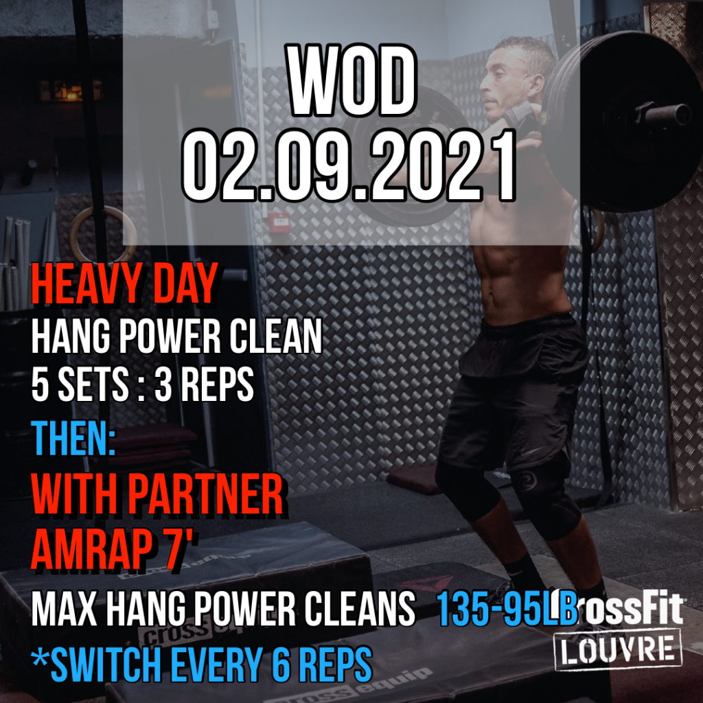 Objectifs: HEAVY DAY. A nouveau deux parties. La première axé sur du lourd autour du mouvement du Hang Power Clean. La suivante, l’application de ce mouvement dans un partner workout. Soulever lourd et amusez-vous!