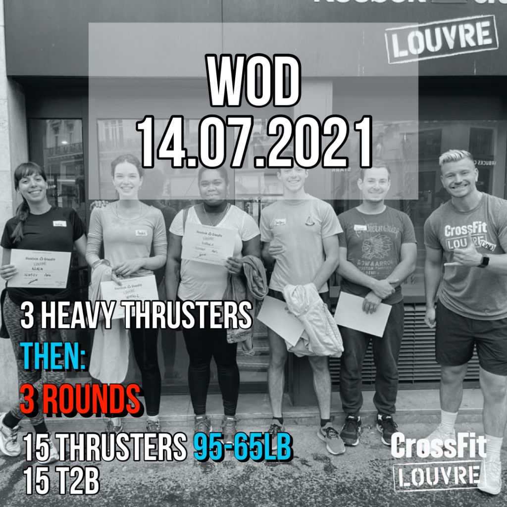 Objectifs: C’est parti pour lifter lourd à nouveau. Dans un premier temps, vous pratiquerez le Thruster lourd pour ensuite le pratiquer sous un format wod associé à un mouvement de Gymnastique. Enjoy!