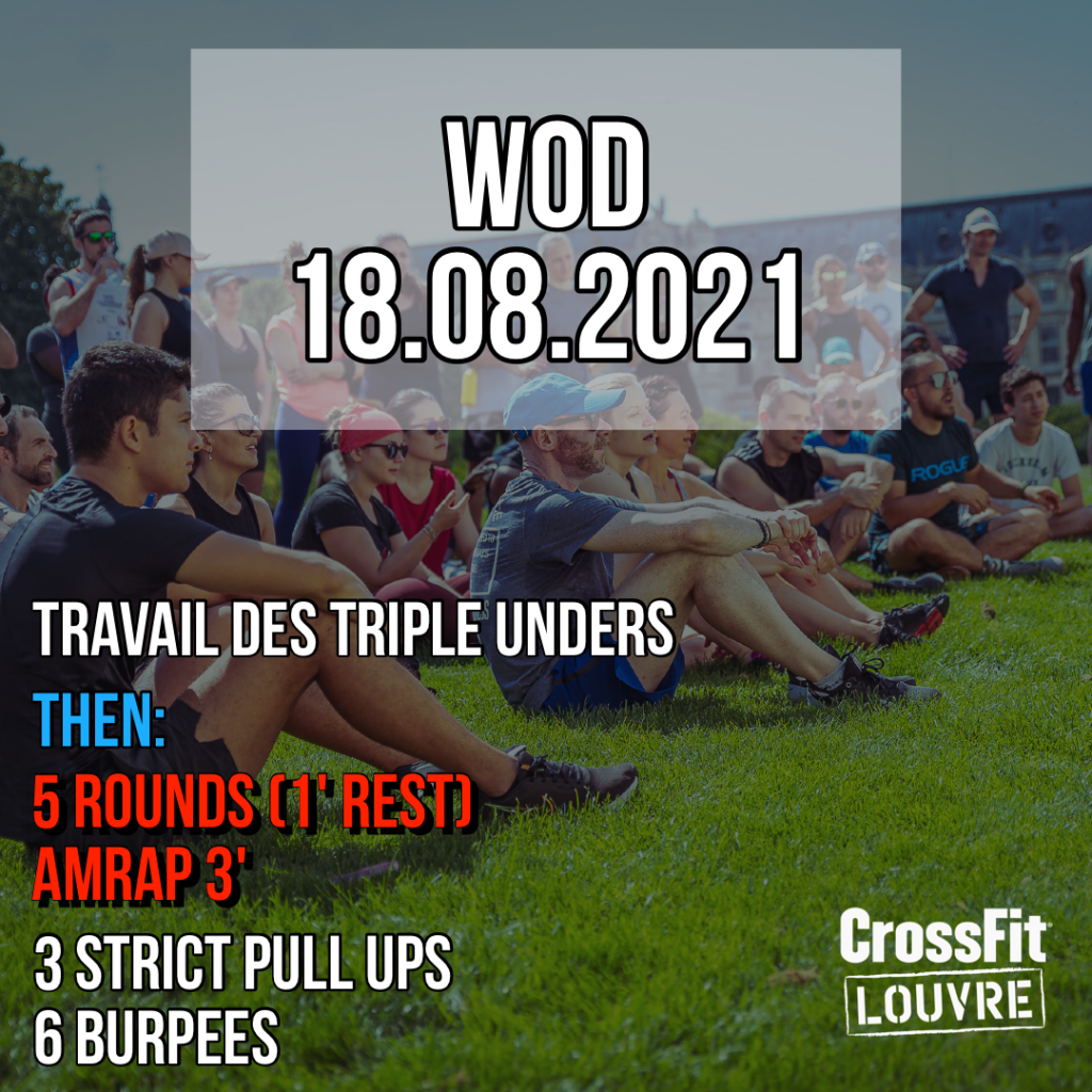 Objectifs: En ce Mercredi, vous aurez un workout en deux parties. Une première axée sur la pratique des Triple Under et la seconde, une succession d’AMRAP où vous devrez bouger constamment.