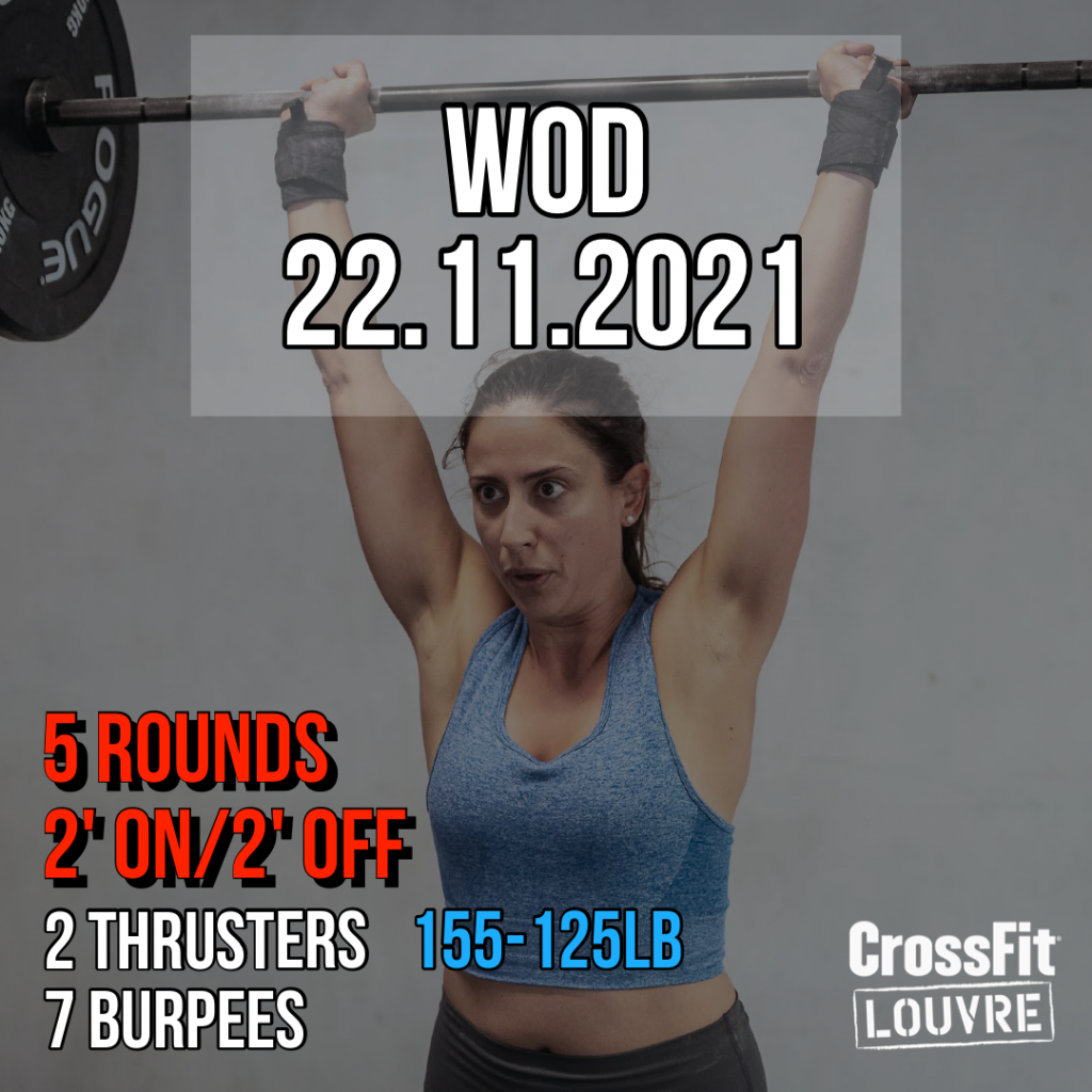 FOCUS: Tout d’abord, sur les Thrusters. Concentrez vous sur l’extension des hanches avant la poussée. Enfin, sur les Burpees. Concentrez vous sur le retour des pieds de part et d’autre des mains tout en conservant les hanches hautes.