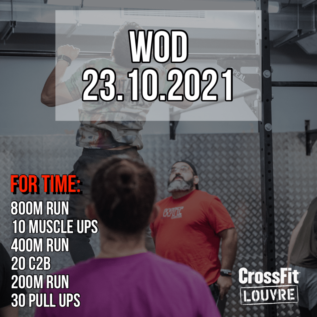 FOCUS: Tout d’abord, sur la course. Faites un focus sur le fait de ne pas poser les talons au sol et profitez-en pour relâcher vos bras et épaules. Ensuite sur les Muscle Ups. Concentrez vous sur la vitesse des bras lors de la transition. D’autre part essayez de pousser la barre vers le bas plutôt que de tirer cette dernière. Enfin, sur les Pull Ups et Chest To Bar. Concentrez vous sur l’amplitude complète de mouvement tout en maintenant un kipping efficient.